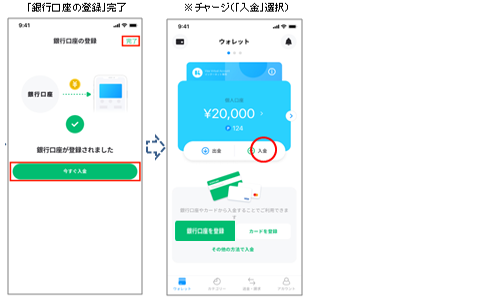 銀行口座の登録が完了すると、チャージ(入金)が可能となります。